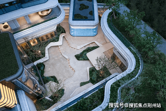 建筑颜值与实用性拉满:外立面用弧线转角阳台 + 蓝灰色钢化玻璃,公建化风格搭配超高窗墙比,采光与私密性兼顾;整体抬高约 3 米打造 “抬地式建筑”,实现人车分流,架空层还营造归家仪式感;景观更惊艳,师法 “九溪烟树” 打造立体溪谷园林,下沉庭院 +“空中花园” 形成峡谷地貌,漫步其中宛如置身自然溪谷。