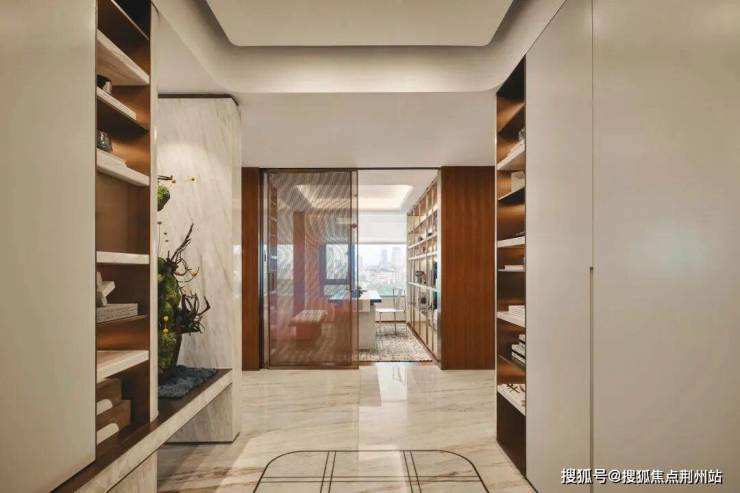 样板间灵感撷取自高定时装的流畅线条与微妙光泽,在玄关,香奈儿白皮革面板如同礼服的华美面料,金属收边则是其精工针脚,于入门刹那,定义空间的优雅基调。