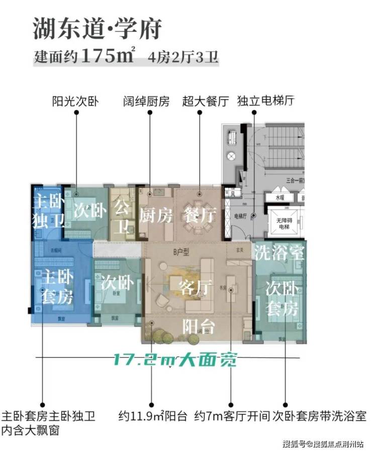 项目建面约143-179㎡的湖居平层,一梯一户,多开间朝南,阳台开间均在7米以上,墙窗比很大,采光通风都没问题。