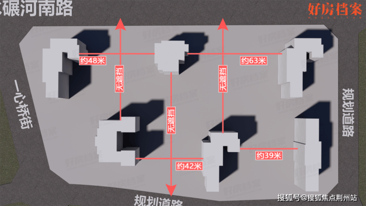 约39-63m左右的主力楼间距,加上每一面都能对望城市核心地标建筑的视野通廊,表演了一次总图的有效规划。
