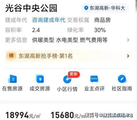 再来看光谷中央公园二手房成交价,一姐查询,该小区最新成交价还是2025年12月,成交价约1.56万元/平。