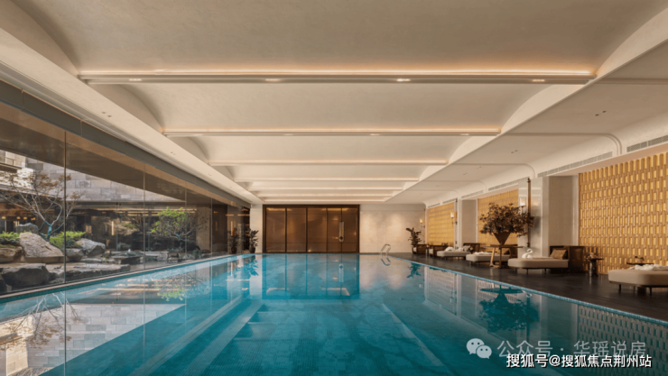 ▌和会所相融、和车库交互!让美无处不在,苏州开发商都来学!这样的美景,不仅仅封闭于庭院内,还很好的被延伸到业主日常生活场景内部。比如下沉式会所各空间,几乎都能通过落地窗引景入内!比如泳池、私宴厅、会客厅、健身房等功能区,都以真山水做背景,给到业主最大化的视觉震撼。没错,绿城·樾庐的会所,除了颜值在线,功能性也很强!