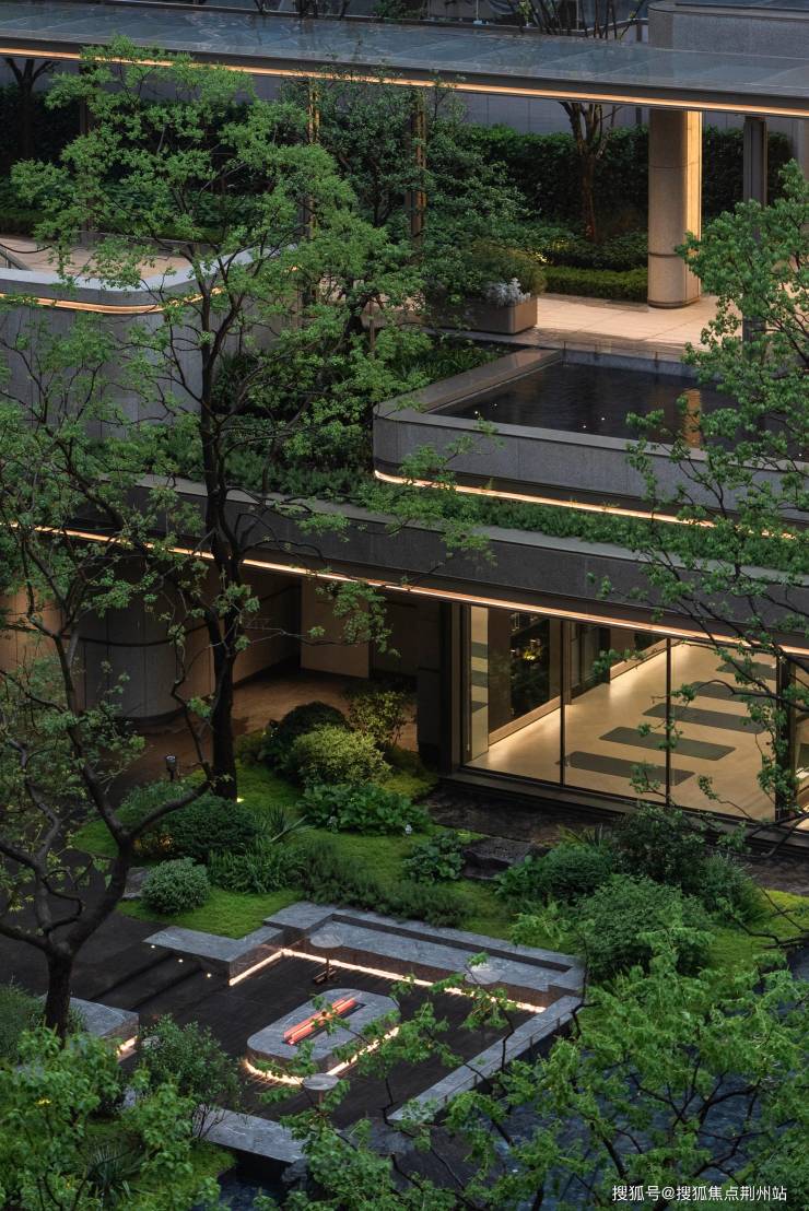植物空间融入乌桕、娜塔莉、冬青、香樾,以纯林和混种搭配的多变手法交相变化。在一连串的园林设计中,可以看到项目绿植硬铺设计的既克制又和谐。无论是空中俯瞰还是360度的行走观感,都是不同角度的满分画面。
