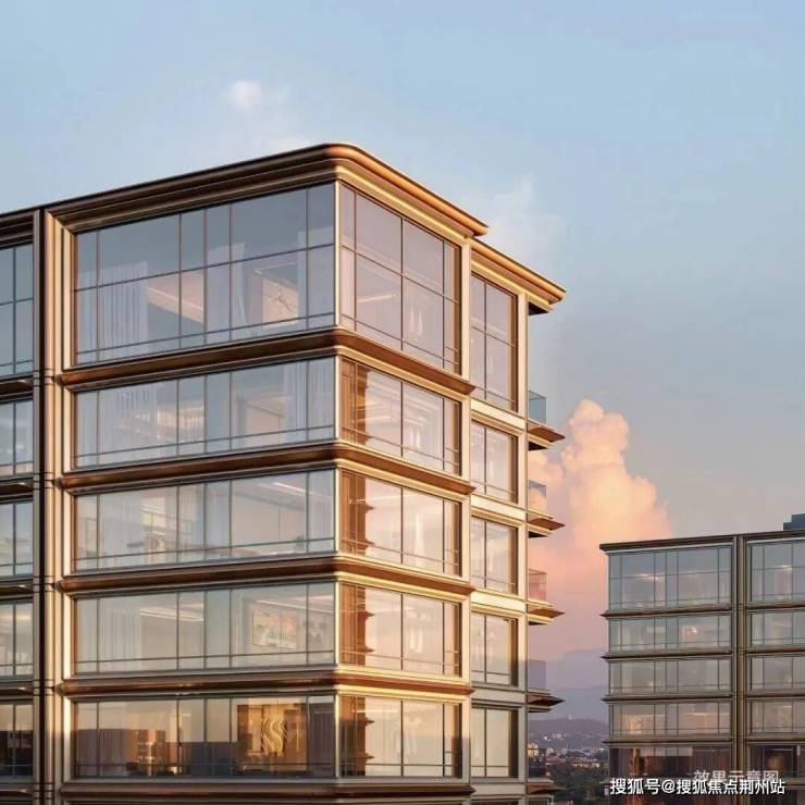 在产品方面,立面为公建化立面标准,主要用材为香槟金四面铝板+石材+落地玻璃窗,阳台统一封包。