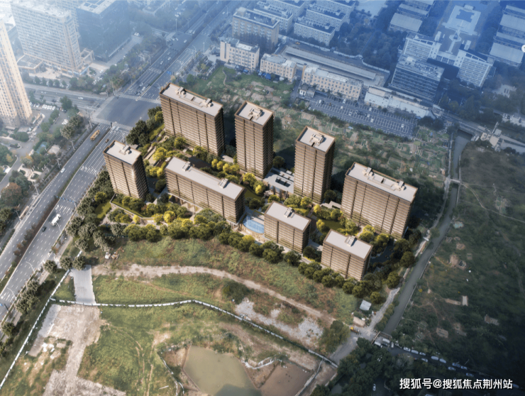 小区的主要出入口,就位于北面坚塔路上,由此方向进入可以看到,项目配备下沉庭院+景观水景系统。