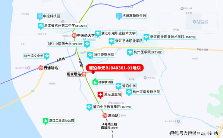 就是地铁4号线杨家墩站口,和浦沿板块之前的热盘观晖美寓、江映云邸等都不远。
