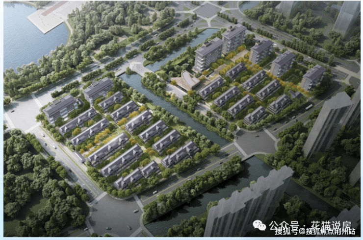 据悉,项目未来将沿着自然水系形成“一河双园”规划型制,通过地上廊桥,地下通道,贯通东西两个园区,将会所、下沉庭院、架空层、车库等多个空间形成一个高效而充满交互的有机整体;