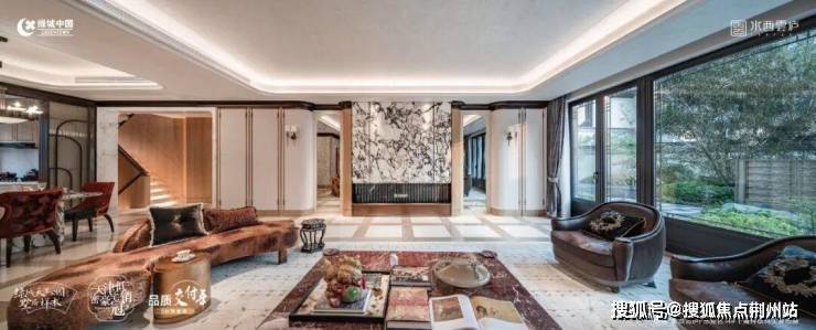 范思哲黑、蓝翡翠等奢石铺地,定制地雕演绎奢宅之品味。院子中的一草一木,一石一水,都是自然的缩影,让人们在繁忙的生活中找到一片宁静的天地。在这里,每一片瓦当都刻着“家” 的象形,每一寸土地都生长着“安”的注脚,终于让那藏在血脉里的院落情结,在晨昏交替间有了可触摸的温度。首层的主卧,窗户正对着的就是这片庭院。每天清晨醒来,或者傍晚休息时,映入眼帘的不是别人的窗户,而是自家的树影、水景与天空。