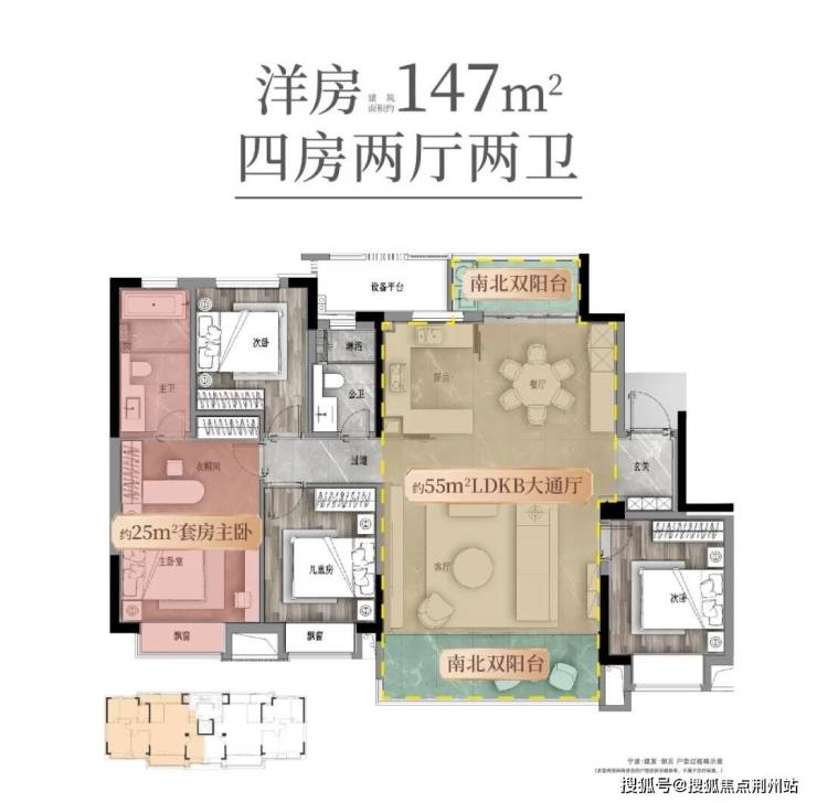建筑面积约147㎡的户型为例,这款首批次热销清盘的“明星户型”,可以说将“迭代洋房”的产品内核演绎得淋漓尽致。