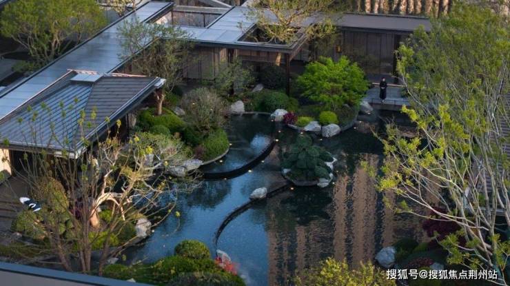 约66米的横向迎宾水轴,12棵特选乌桕漂浮在水面上,展现东方意境的沉静内敛。中心水院设计犹如安缦酒店,水榭会客厅、林下画廊、下沉庭院,叠水、喷泉、镜水,每一处都是一幅美丽的画卷。