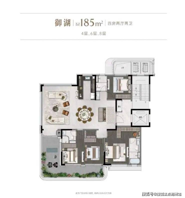 另外值得一提的是,项目首开的另一个大平层户型:29#和33号楼建面约185㎡四房两厅两卫。