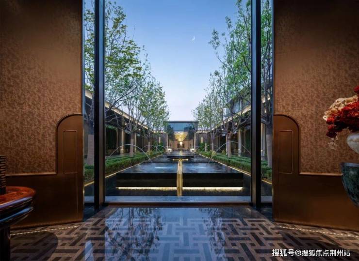 车马院以上海半岛酒店作为灵感来源,在设计方面采用了海鸥丽晶酒店同款的接待门,凸显出尊贵的大家门厅风范;营造社区归家的玄关,下挂式的星空顶、艺术雕塑、迎宾叠水以及范思哲黑背景墙相互映衬。