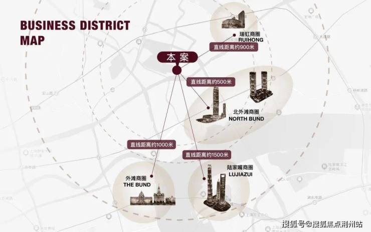 商业方面:项目约2公里内多元繁华构筑封面商业圈,北外滩商圈直线距离约500米;外滩商圈直线距离约1000米;陆家嘴商圈直线距离约1500米;瑞虹商圈直线距离约900米。