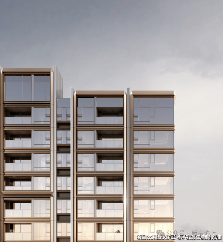 同时,南侧还运用了铜色的铝板和浅色金属板,这样立面风格,再搭配上塔冠的造型,实在太抓眼球了。