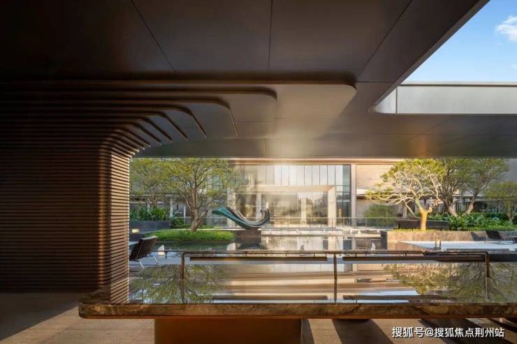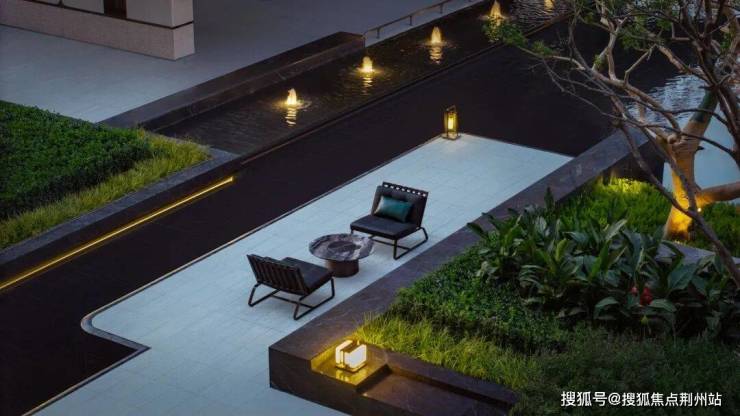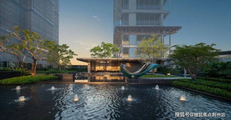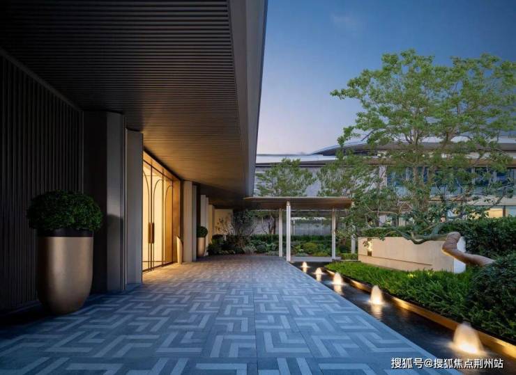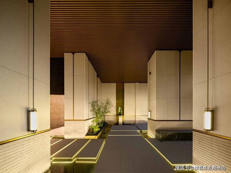 5#入户处,匠心打造极具仪式感的对景墙,搭配灵动的三重水景。潺潺流水,不仅为空间注入灵动之美,更因“水为财”的美好寓意,正对着入户大堂,象征着源源不断的财富涌入家门。此处甄选一棵造型铁冬青不仅是一道独特的景观,更承载着家宅兴旺的美好祈愿,为归家之路,渲染出高贵又温馨的仪式氛围。