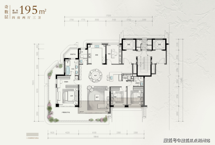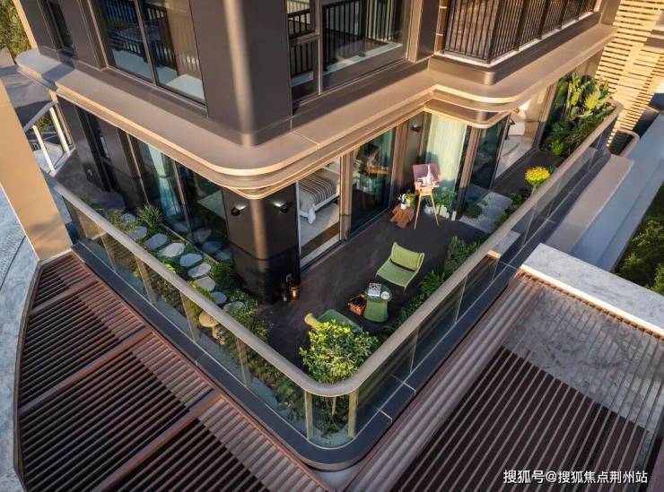 L型露台——270°环形巨幕庭院。项目在空间布局上通过奇偶楼层的露台错位设计,让“庭院平权”落到实处。我们看到项目对四代宅的理解:这里的庭院不是“附加的装饰”,而是让客厅、卧室、厨房、书房都能向外生长的“生活延伸层”,让墅级的舒适感,渗透在每一个日常场景里。