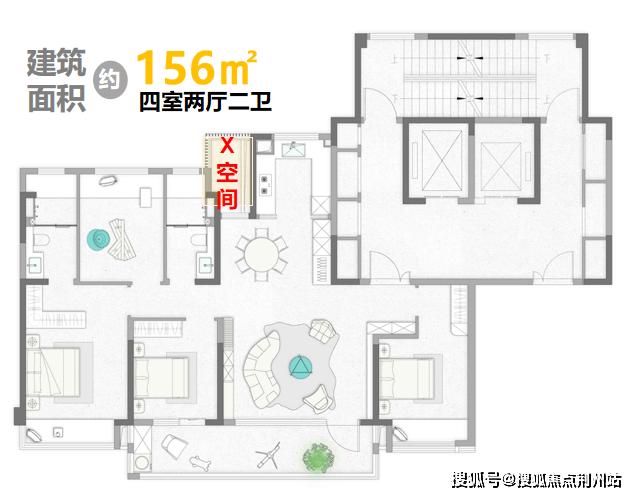 该户型同样为四房两厅三卫,建面约240㎡户型的缩小版。