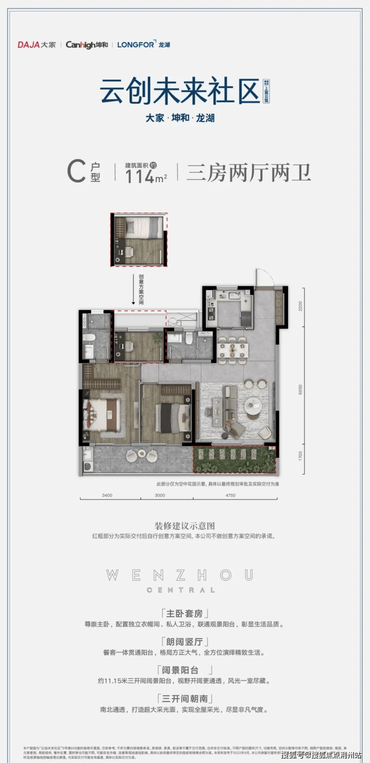 2、一线瞰江:板块唯一瞰江楼盘,直线距离约600米瓯江,规划海洋公园;
