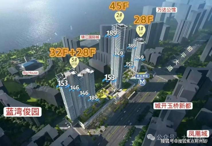 1号、2号楼靠近和平大道一侧为149㎡户型,西侧3-15层为153㎡;16层及以上为189㎡有看江视野;3号楼为146㎡、153㎡和189㎡户型组合。