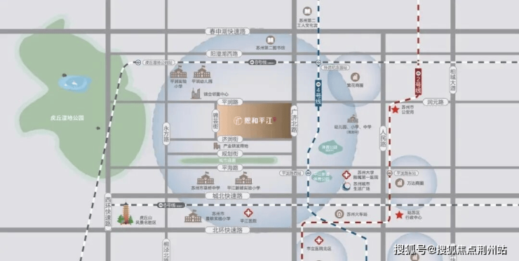 生活配套:平江万达广场、繁花中心等商圈环绕,苏大附一院、虎丘湿地公园等医疗、生态资源近在咫尺。