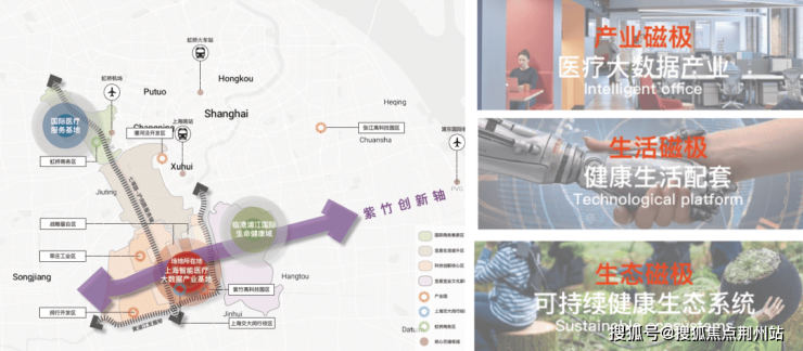 项目所在区域周边丰富的科研教育资源也是其重要的优势。距离基地900m是上海交大闵行校区,上海交通大学医疗机器人研究院在这里落址,发展个性化、智能化、微创化的医疗机器人前沿技术。邻近的紫竹高科技园区以及周边工业区,也为“大零号湾”中聚焦生命科学相关产业的“鲶鱼”——“国盛健康云城”,打造“科技+养老”的跨学科融合发展提供了多元化的产业生态环境,进一步加快了产城融合的步伐。