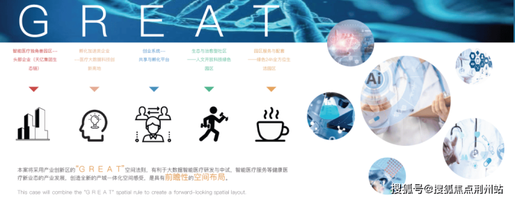 城市空间策略围绕“GREAT”法则展开,立足于三大产业愿景的整体布局,融合“产业 + 生态 + 生活”三位一体的发展策略,有效促进大数据智能医疗的研发与中试、智能医疗服务等健康医疗新业态的聚集与发展。通过前瞻性的空间规划,打造兼具功能性与体验感的产城融合新格局,赋予城市空间全新的生命力与想象力。
