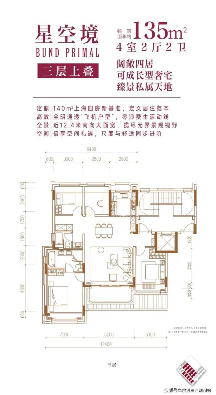 首层层高约3.6米,第二/三层的层高也有3.3米;三层户型南向面宽一致,约12.4米,其中客厅面宽约5.2米,主卧面宽约3.9米;三层户型的区别,在于层层退台造成的进深逐层有所减少。三层洋房本身就公摊少,加上空间的高效拓展,从尺寸数据还是样板房体验,每个主要功能间,都可以对标市面上建面约180 ㎡以上的大平层尺度感。