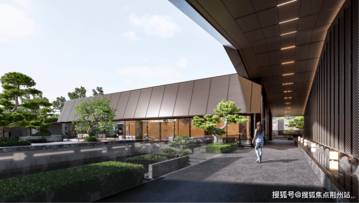 步入大门后,约340㎡的下沉庭院,宽逾10米、高约4米的叠瀑水幕宁静垂落,完成喧嚣与静谧、城市与自然的转换。内部立体园林,以经典名园沧浪亭为灵感,淬炼出"池岛、静潭、山石、水榭、草林、竹嬉"六大意境场景,完成了传统园林艺术的现代转译。五重归家礼序,通过门庭、中庭、后院,有序贯穿,让业主归家情绪层层递进。