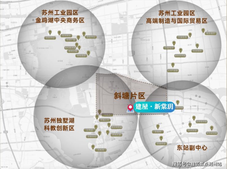 板块示意图 仅供参考4.0时代的奥体南(斜塘片区),正面临着前所未有的发展机遇,周边分布四大片区:金鸡湖中央商务区、高端制造与国际贸易区、科教创新区的建设,以及当下恒泰也正在积极建设的东站副中心。斜塘片区正位于以上四大重要区域地理中心,成为容纳园区高端人才居住和生活的最佳区域,也就是传统认知上的15分钟黄金生活圈。