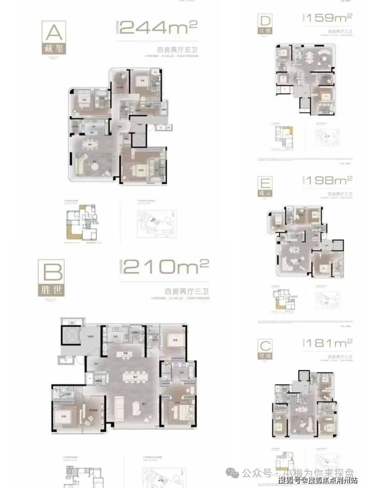华发外滩玺华发大堤口项目一共4栋楼,1号楼 28 层,2 号楼 25 层,4 号楼 25 层。其中1、2号楼一线临江,从平面图可以看到1、2号楼南向偏西朝向,1号楼有1个单元是东南朝向背江。因此,1、2号楼只有西边套户型能做到正面看江和270度观江,其他户型则是西南向看江,但是1号楼背江的户型基本就看不到江了。从户型分布来看,1号楼从西向东,户型依次是建面约244m²、210m²、180m²,159m²。2号楼则都是建面约198m²户型。