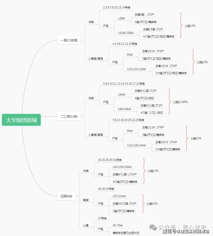 总共42栋住宅,其中24栋洋房,3栋小高,15栋高层,还有1栋公寓
