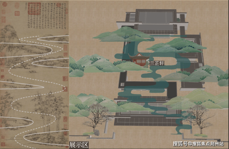 提取“元四家”倪瓒《江亭山色图》中描绘的“空亭”“远山”“疏树”“平江”等自然山水景象,以“隔江空亭,秀润林荫”为主题,将“曲水流畅、重山叠峦”化作园林骨架,打造独特秀丽的园林景色,筑成至臻至奢的东方意境住宅。