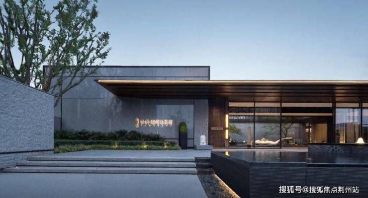 建筑整体方正硬朗、沉稳大气,两侧搭以朴树和精致花境,营造充满东方美学的礼序入口。视觉中心处,山石横卧于水景之上,与泮池砚台相映成趣。长砚迎宾,赋予归家礼仪的尊崇感。