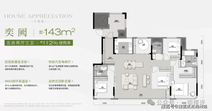 另外,该项目还有建面约143平的五房两厅三卫大户型,优化后约112%使用率,预计后续加推。