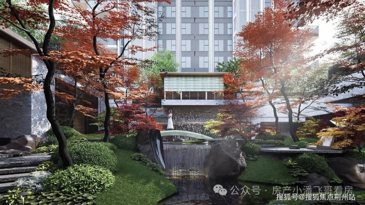 板块内规模领先近1000㎡下沉庭院,首创立体庭院景观,借2.5米高差与6米端景落瀑,三层叠水勾勒如画意境,打造一座可游、可赏、可感的沉浸式苏韵园林。