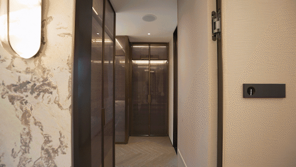 另外,餐厅两侧均预留餐边柜位置,是两个交付的冰箱位置,增加更多的收纳。