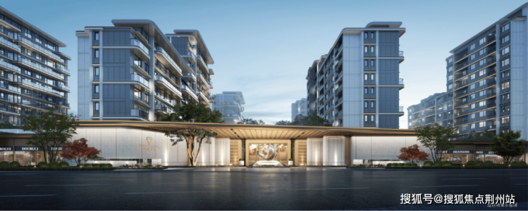 海潮月华没有简单复刻传统元素,而是以布契拉提金丝镶嵌工艺为灵感,以“钻石级切割”工艺,将米白色仿石铝板与香槟金饰线精心拼接,配以蓝灰色LOW-E玻璃,让建筑如精致珠宝般熠熠生辉。
