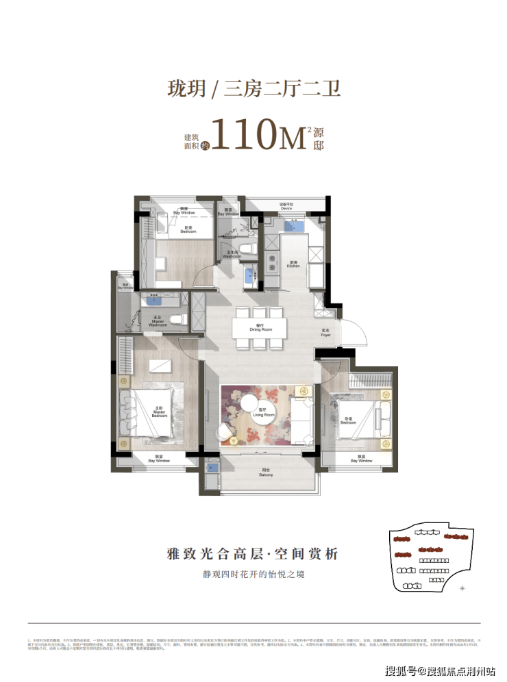 110㎡做大三房,南北通透飞机户型,餐厅容得下大圆桌,多飘窗设计拉满尺度感。