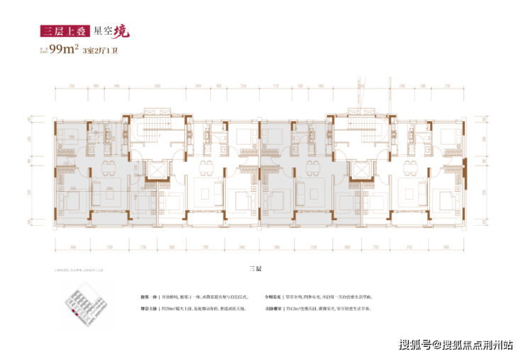 再配合超大面宽、全明设计和普遍的阳台飘窗赠送,实现了“层层有附赠,户户有天地”的院墅感。
