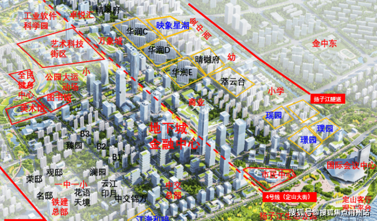 教育配套:北边就是鼓楼幼儿园、一中二小和一中高中,都已经投入使用,东边是规划金中西校区,中学暂时上扬子江隧道另一侧的金中东校区,鼓楼幼儿园时晴翠府居住组团的配套,华润幼儿园在晴樾府的东边,也正在建;