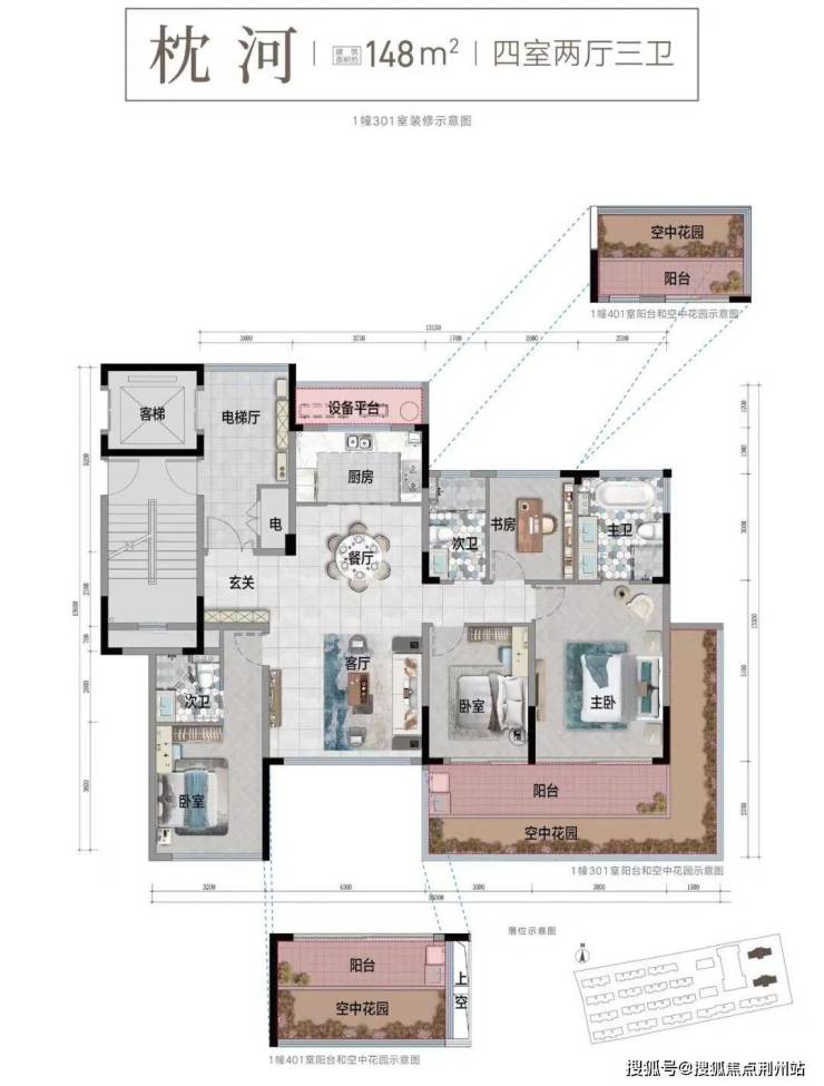 配备空中庭院、LDKBG一体化设计,实现“家家有露台,户户有花园”,最大露台面积约28㎡。