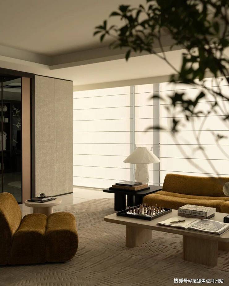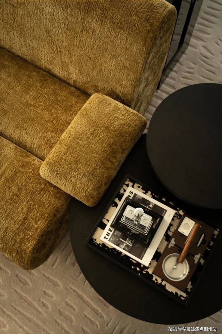 同时客厅的设计采用了深具革新意义的“城市第三空间”概念打造呈现。在居住与商务属性之间寻找平衡,通过更多场景化元素,如在家举行小型会议,商务接待,商务洽谈以及家庭聚会等,空间氛围上加强场景感,酒店化,来打造非正式公共聚集场所以社交为中心的空间属性。