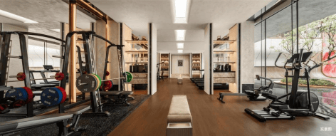 [氣舒健身] 将社区健身房植入沉浸式万方园景之中,专业级健身设施配备,晨昏锻炼自在悠然。