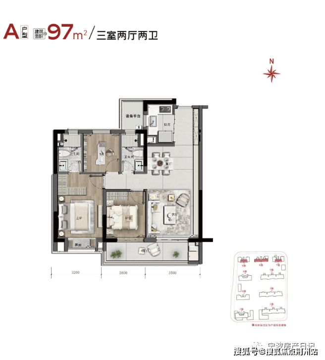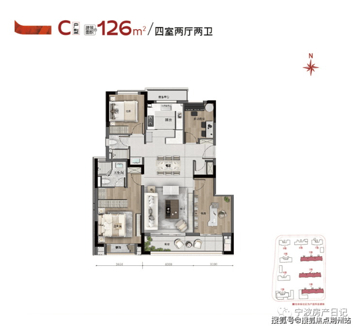 小区一共6幢高层,3幢洋房。建面约97-126㎡纯粹改善大户型,配置0.42超高窗墙比、通透玻璃立面,同步世界美学语境。其中126㎡是洋房,是目前江北在售新房中的唯一洋房产品。无论是外观的颜值还是户型设计,璀璨天鑫的标准都是翘楚,诚意满满。高层户型的房率在80-81%,洋房126㎡的户型得房率达到了85-86%。这样的实用面积,在市面上处于领先。