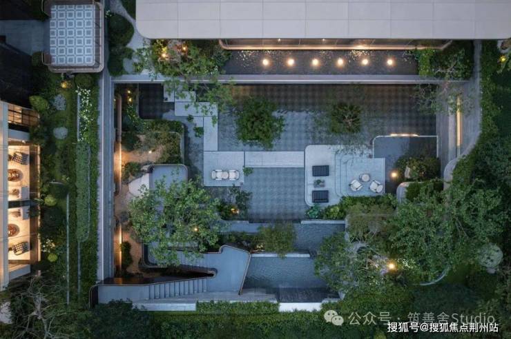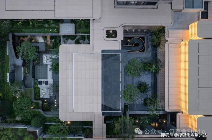 步入大门云石穹顶之下,匠心复刻古代“藻井”神韵,以522片皇家白玉精雕细琢,汇聚光华,辉映古今。华光流溢处,中心池水托举艺术雕塑,莹润皎洁,宛若稀世珍宝。立面更以铂金钻奢石铺陈,搭配墨绿荷塘月色奢石、安哥拉黑奢石花钵,以及手工锻造的巨幅铜门,于光影交错间流淌温润质感,尽显奢华风范。丽香庭以古典入园空间为灵感,精心营造多重院落与层层递进的归家仪式感。地块整体抬升约3.7米,结合最大高差超7.5米的下沉庭院,巧妙运用视觉层次划分功能区域。通过散点布局与小空间组织,消弭空间中心,自然山水垂直延展,构筑多维“立体庭院”。游廊蜿蜒、台地错落,漫步其间,沿自由灵动的立体游园路径前行,仿佛步入画卷,心随境化。
