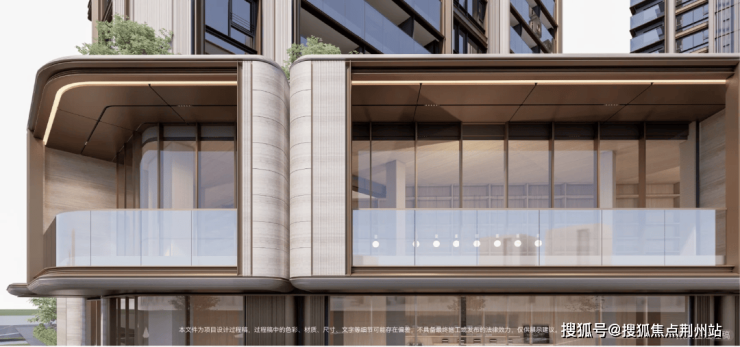 建筑立面搭载“天幕级通透玻璃幕墙”,以“流动光之容器”为设计内核,构筑起会呼吸的巨幕画框,以近60%的高窗墙比实现引光入室的极致表达,通过框景设计将城市景观与社区绿意纳入日常。