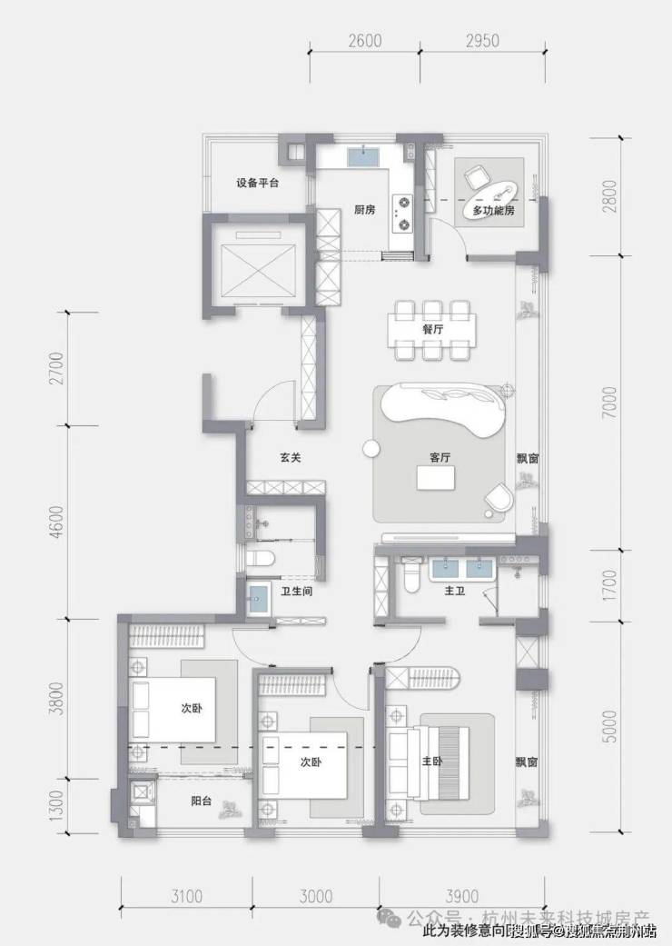 百变X空间:可打造超大面宽客餐厅+大三房