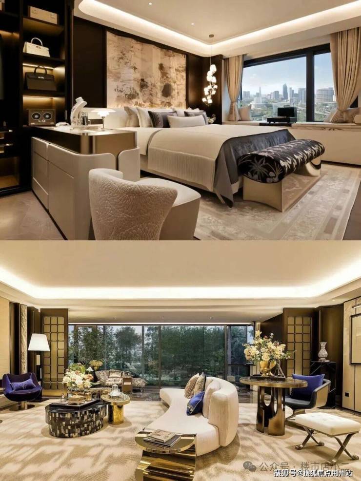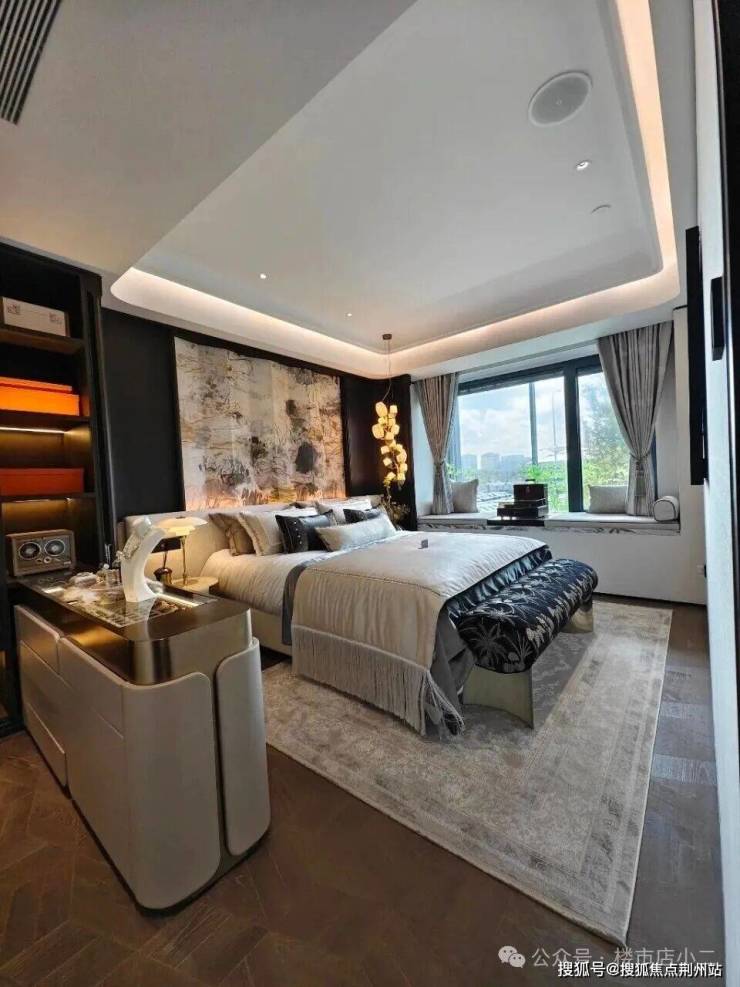 就说弧形元素,它是我见过最多的, 吊顶、客厅墙面、卧室背景墙运用大量曲面,有的是木饰面弧形,有的是奢石弧,工艺复杂耗材多,但绿城依旧做了,只为更高级的使用体验。