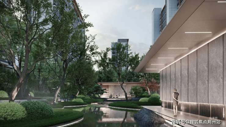 项目还打造了一纵两横森氧艺境城市社区,其中涵盖了约400米无界宽景自然艺术轴、约460米流动的江之界森林界面以及约240米社区街心焕活轴。