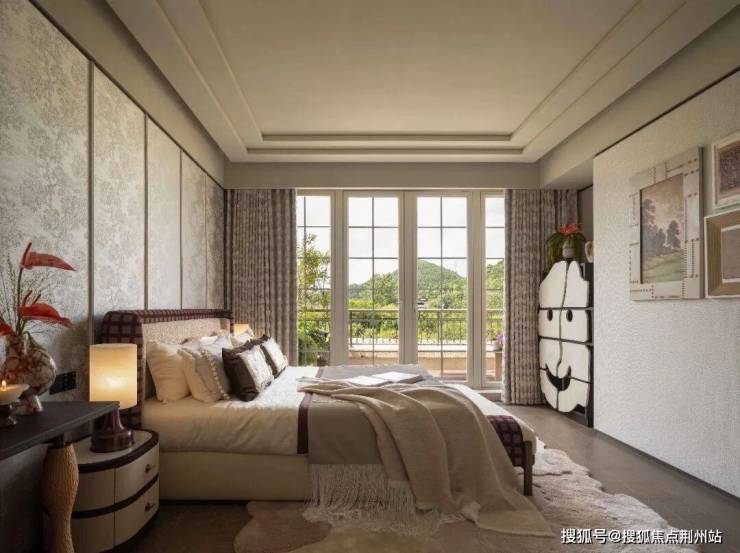 儿童房以自然木纹与贴心功能守护成长,主卧套房以深色基调与低背床营造松弛氛围,靠窗阅读角伴绿意阳光,静谧宜人。